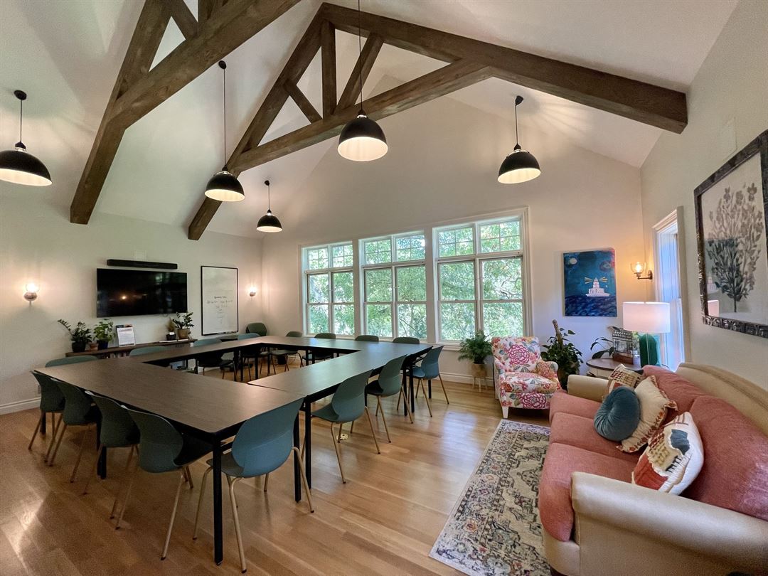 We have 6 offices, 3 large common areas, an outdoor deck, an art studio, a spacious workshop, and outdoor grounds on two acres. The space is designed for your comfort and built with attention to detail, with the highest quality materials and craftsmanship.