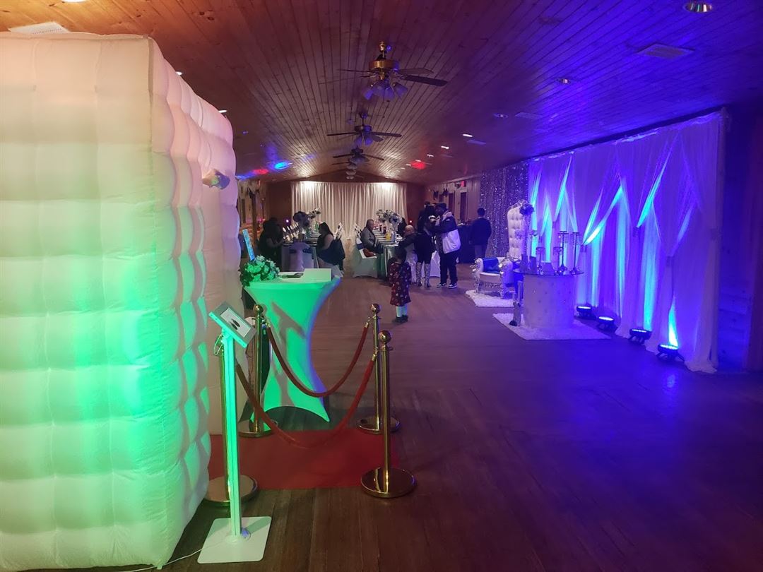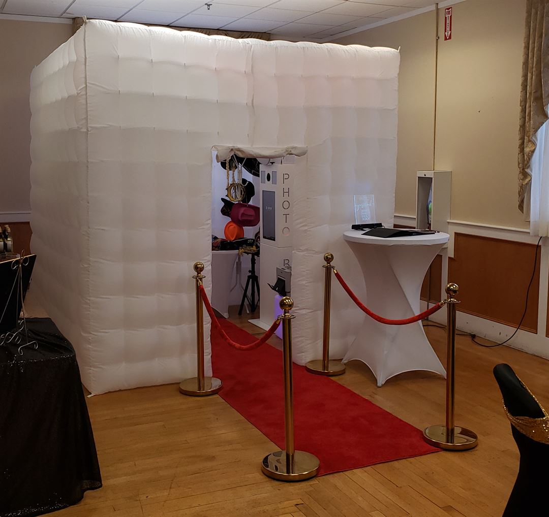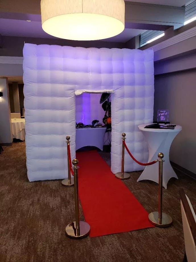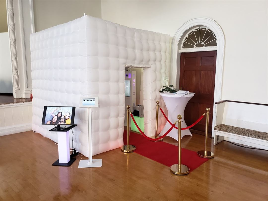Attractive and elegant closed photo booth station with LED lights for your guests to interact with.