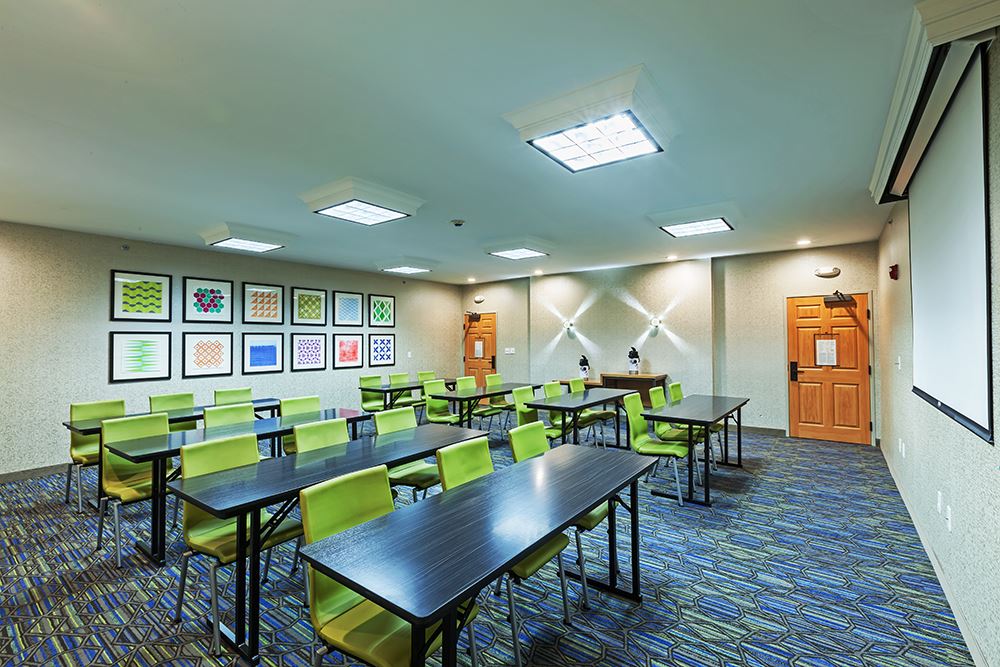 The Stonewood Hills Meeting rooms is 675 sq. ft. and accommodates classroom seating for 20. Our meeting room is conveniently located on the main lobby of the hotel, adjacent to the front desk.