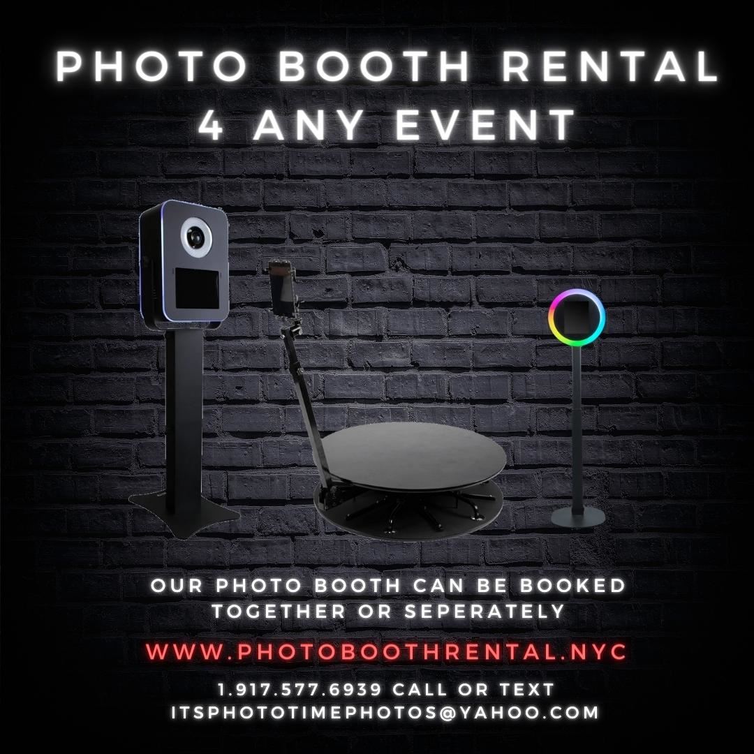 Our 360 Photo Booth come with: On site professional attendant - Set up & breakdown - Digital share station - Files shared via text, email or airdrop - Custom overlay with choice of song - 1200lb load capacity - 5 Light set up - Shareable gallery download link - Safety barrier (stanchions)