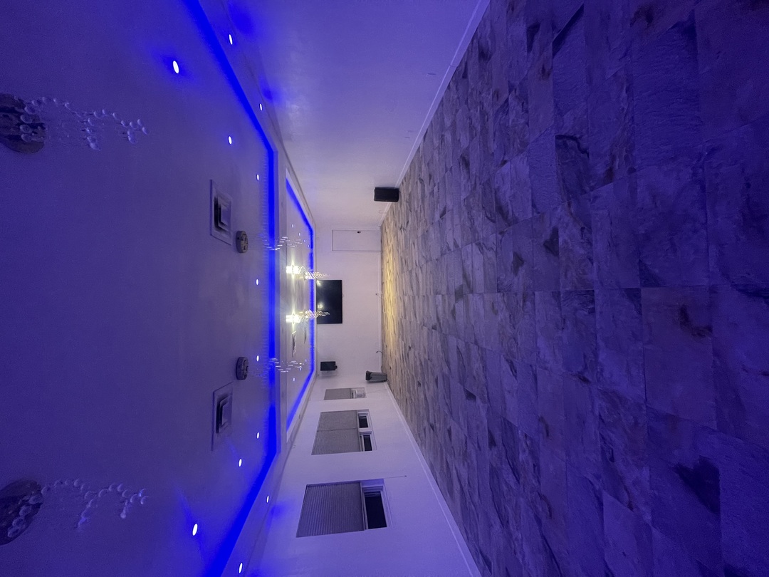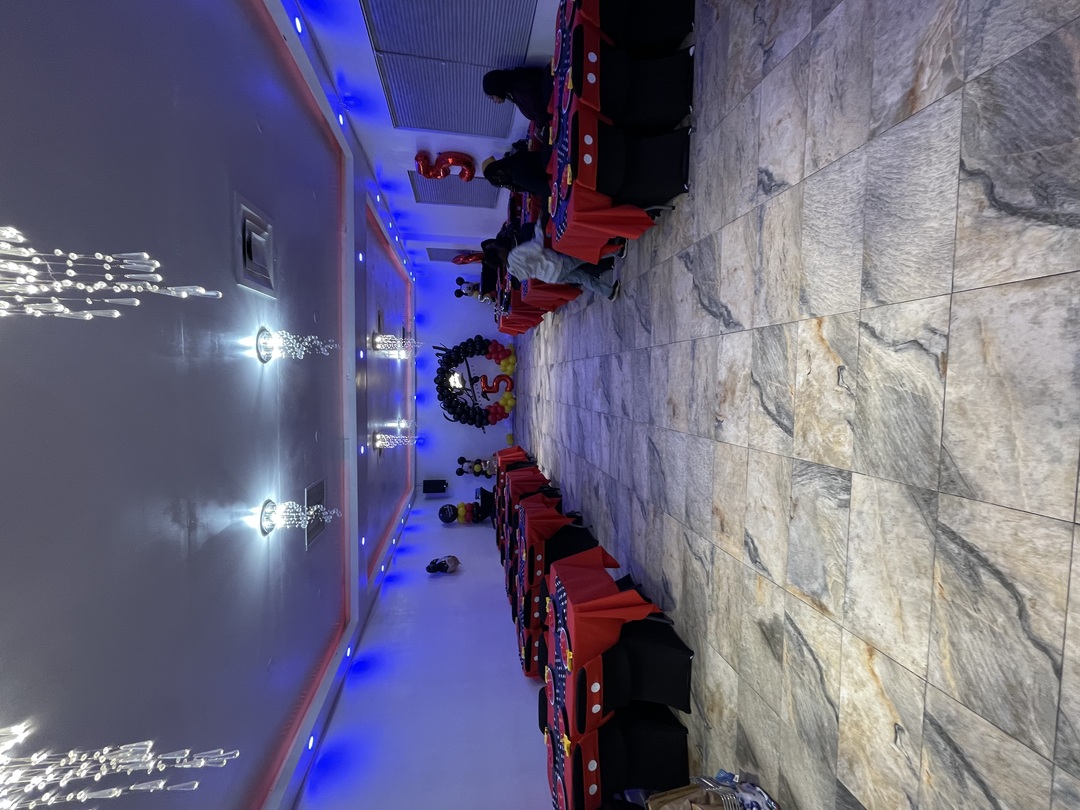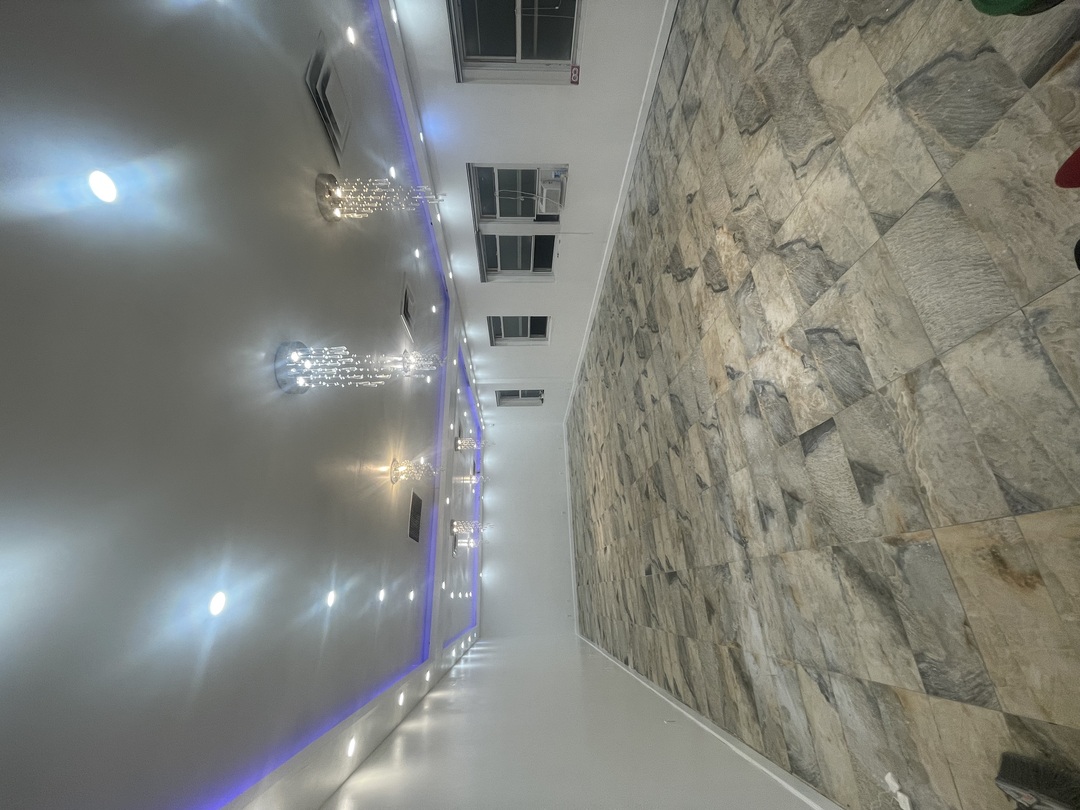 Step into a clean, stylish setting perfect for any occasion. Includes chairs and tables. Our venue features white walls, color-changing recessed and LED lighting, and beautiful patterned porcelain floors that add elegance to your event. The space is equipped with mirrors and a mounted TV, creating the ideal backdrop for birthdays, pop-up shops, baby showers, and more.