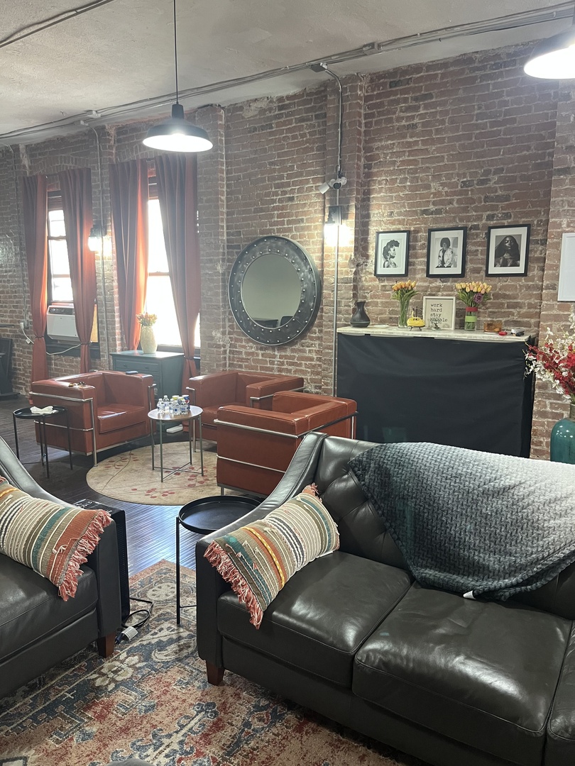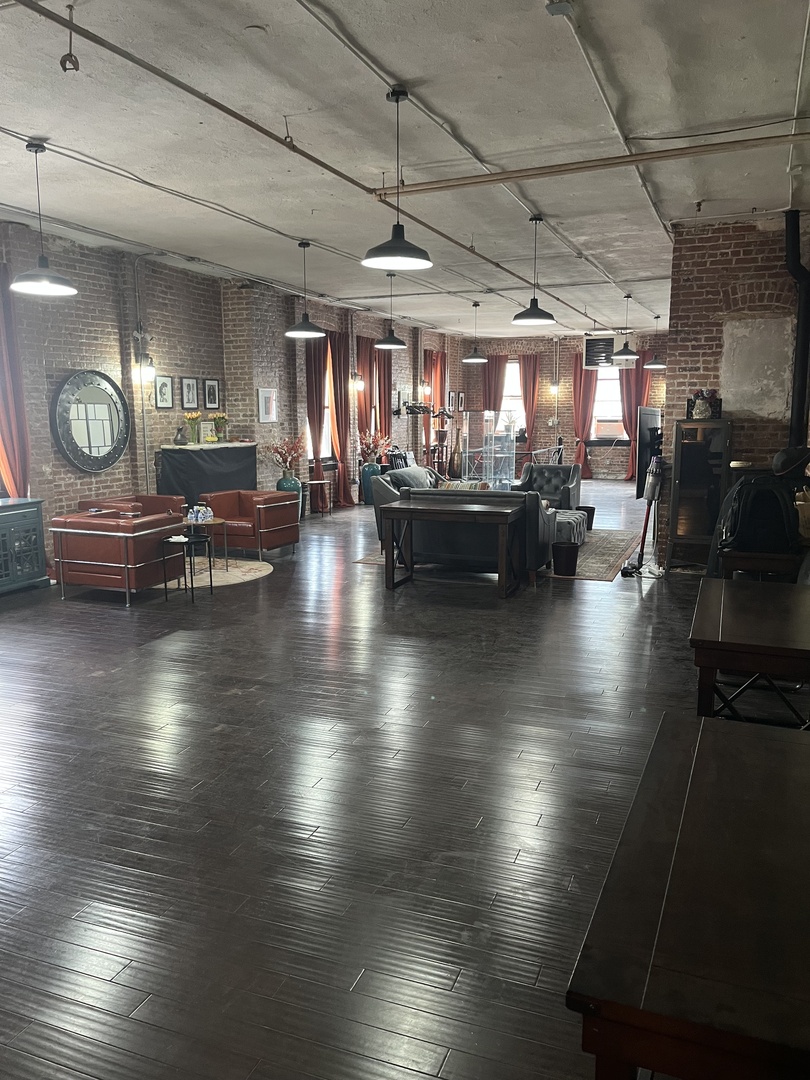 Our loft is not an ordinary loft. Its versatility knows no bounds. We are located in the Mott Haven section of the Bronx. We have a lounge area with a TV, seating zones, a kitchen with an island, some desks, a fireplace, and a couple of desks. It's 2,800 sq feet and open so it allows you to be creative.