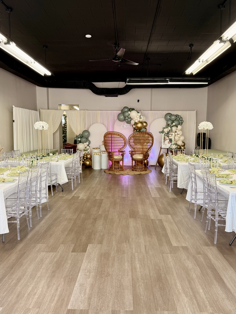 Our venue provides a spacious layout suitable for a wide range of events. Whether you are planning a bridal or baby shower, birthday party, graduation celebration, brunch gathering, networking event, or corporate function, our venue is perfect for all kinds of occasions.