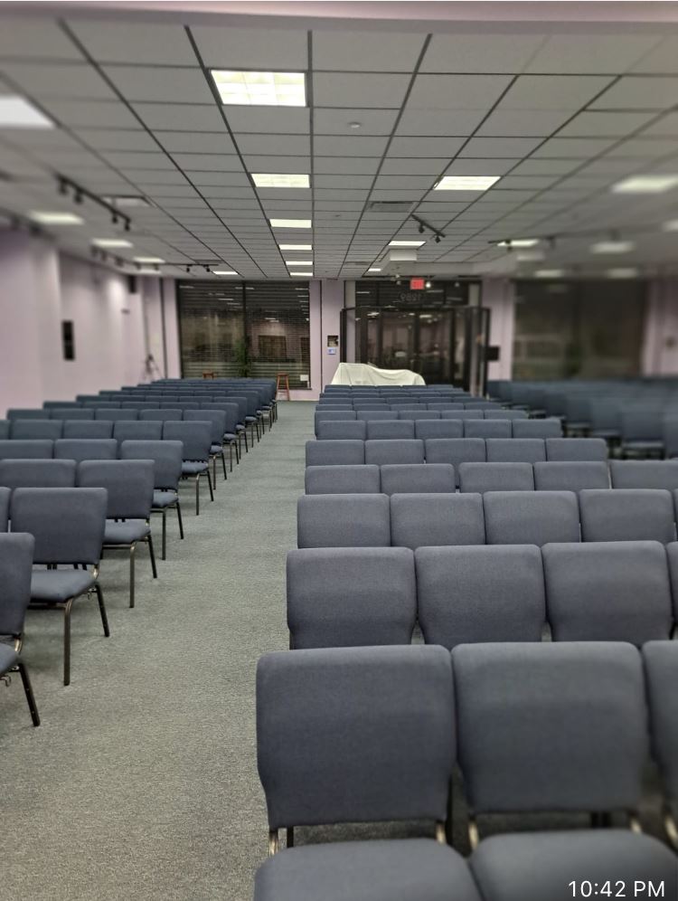 Huge space and tons of seats, in the back of the main area of the church has even more private space. The church was recently remodeled and it close to the train and shopping areas.