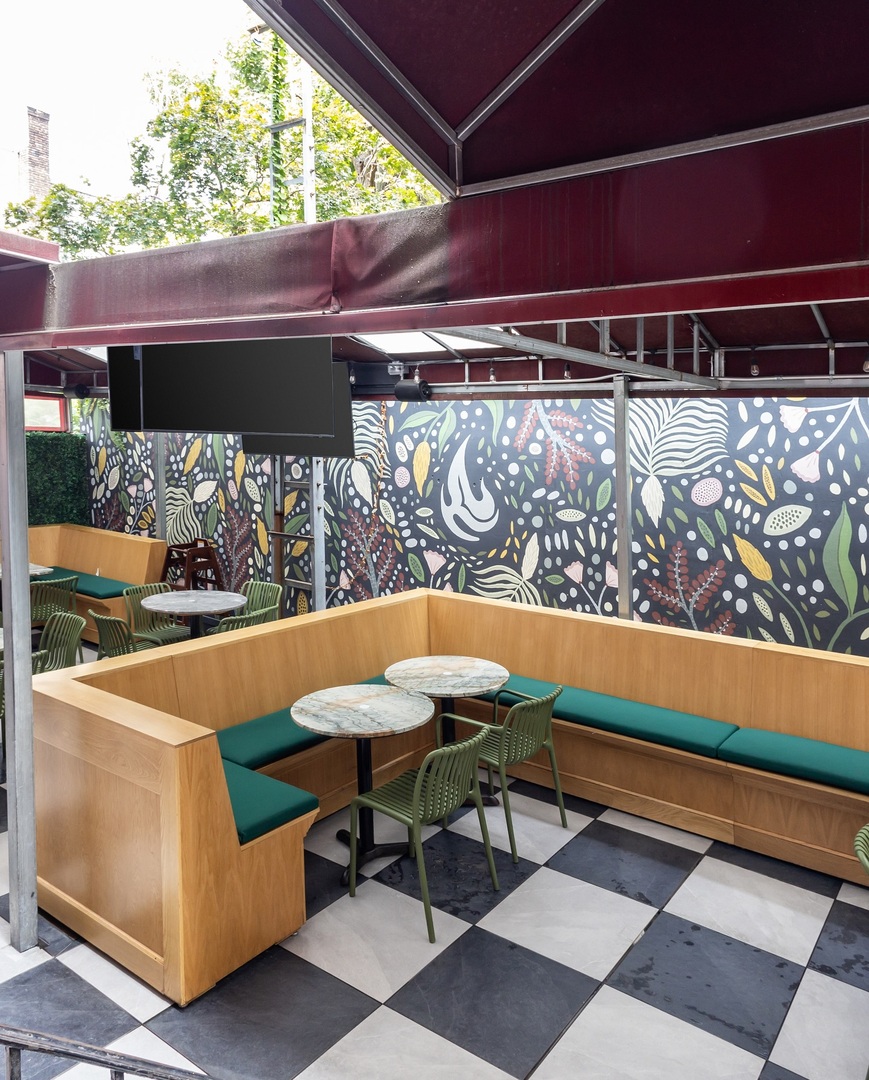 - Spaces: Indoor bar & dining area, outdoor seating
