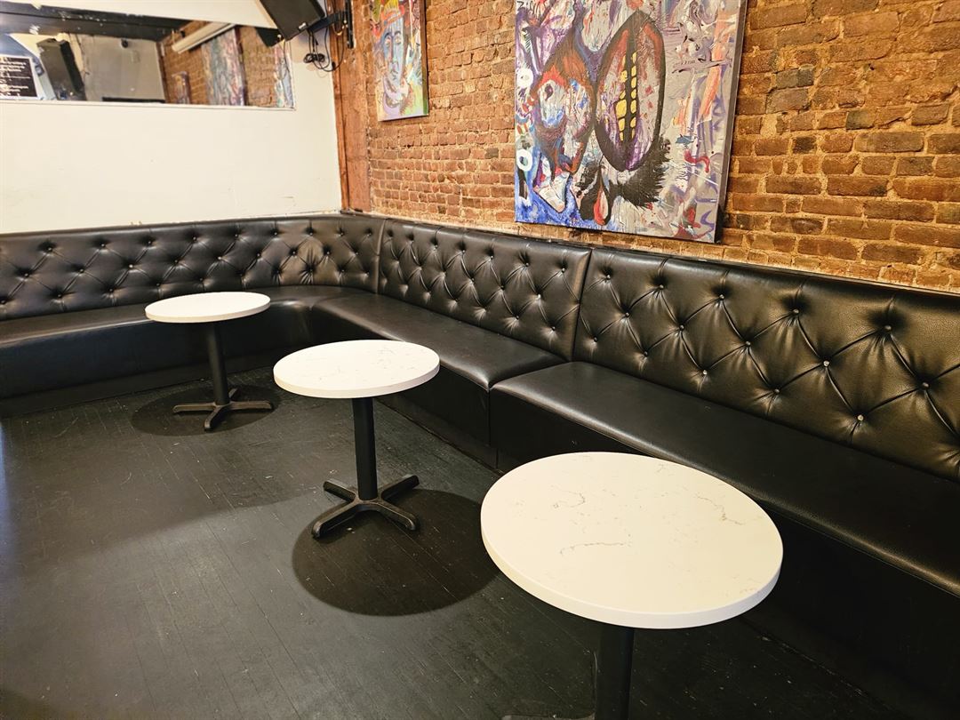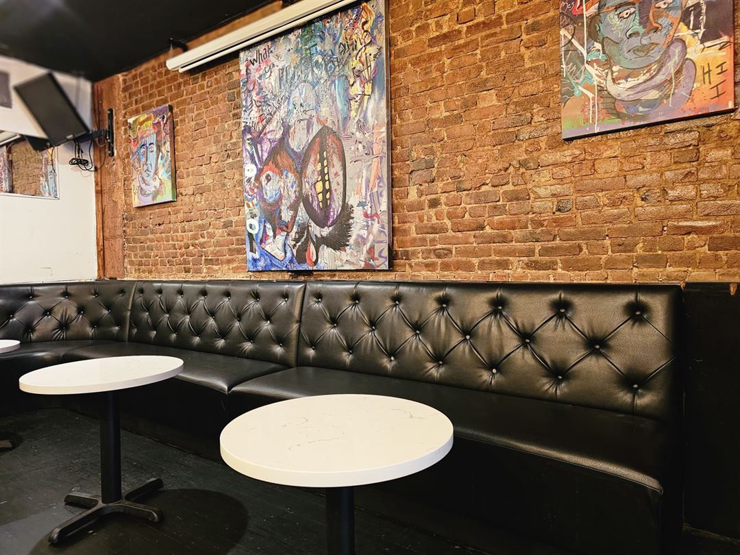 Kingston Public House is a unique space in the heart of Crown-Heights offers chic décor, exposed brick and soaring 13' ceilings. 900 sq ft of hand-built interior, custom lights, art, banquette seating and plenty of character. There is a beautiful 200 sq ft backyard space, and a private bathroom.