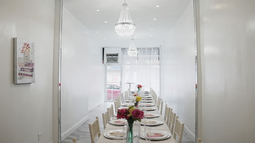 We offer a intimate private clean white venue for an affordable price in Brooklyn. Our venue comes with chairs, tables,2 portable bars, and a huge backyard. We also have rental packages.