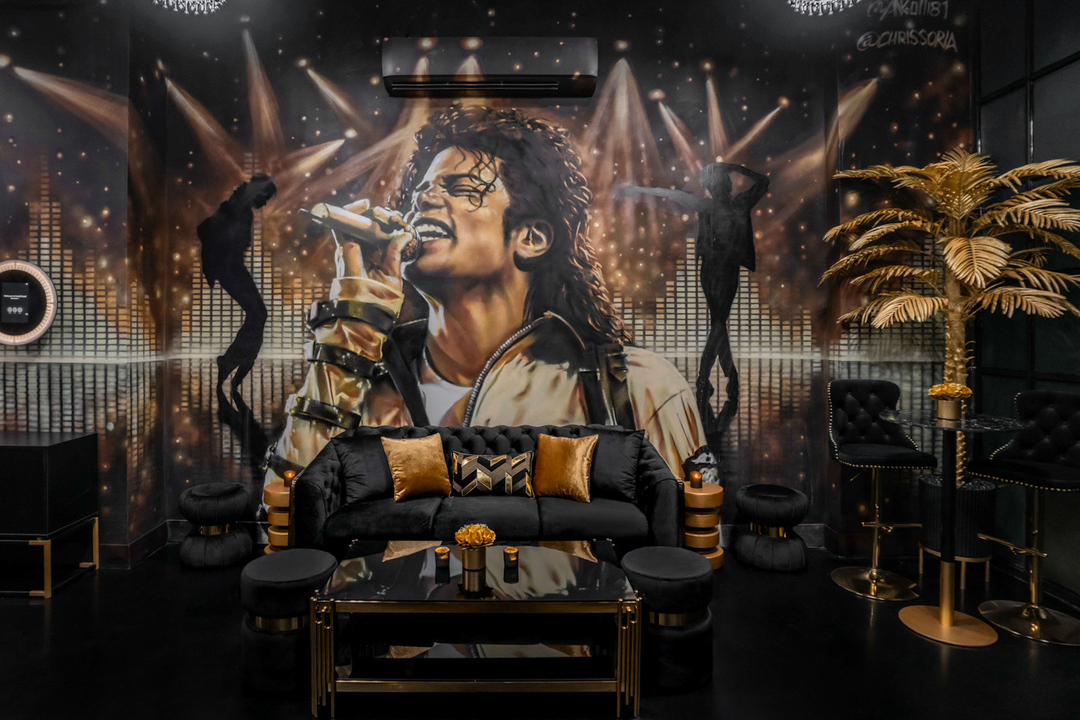 The essence of 80’s pop music is woven into every detail of this luxurious lounge: from opulent furnishings, grand chandeliers, sleek piano to vintage gramophones, golden disco ball, abundance of dramatic gold & black accents and custom marquee board with timeless pop classics on display. It’s the place where the walls literally tell the story of pop’s golden age: breathtaking artistic murals of Grammy-winning icons, a bespoke record wall featuring legendary songs and sparkling glitter & gold arch – you will be taken on a nostalgic journey back in time and fully immerse in music, art & glamour.
