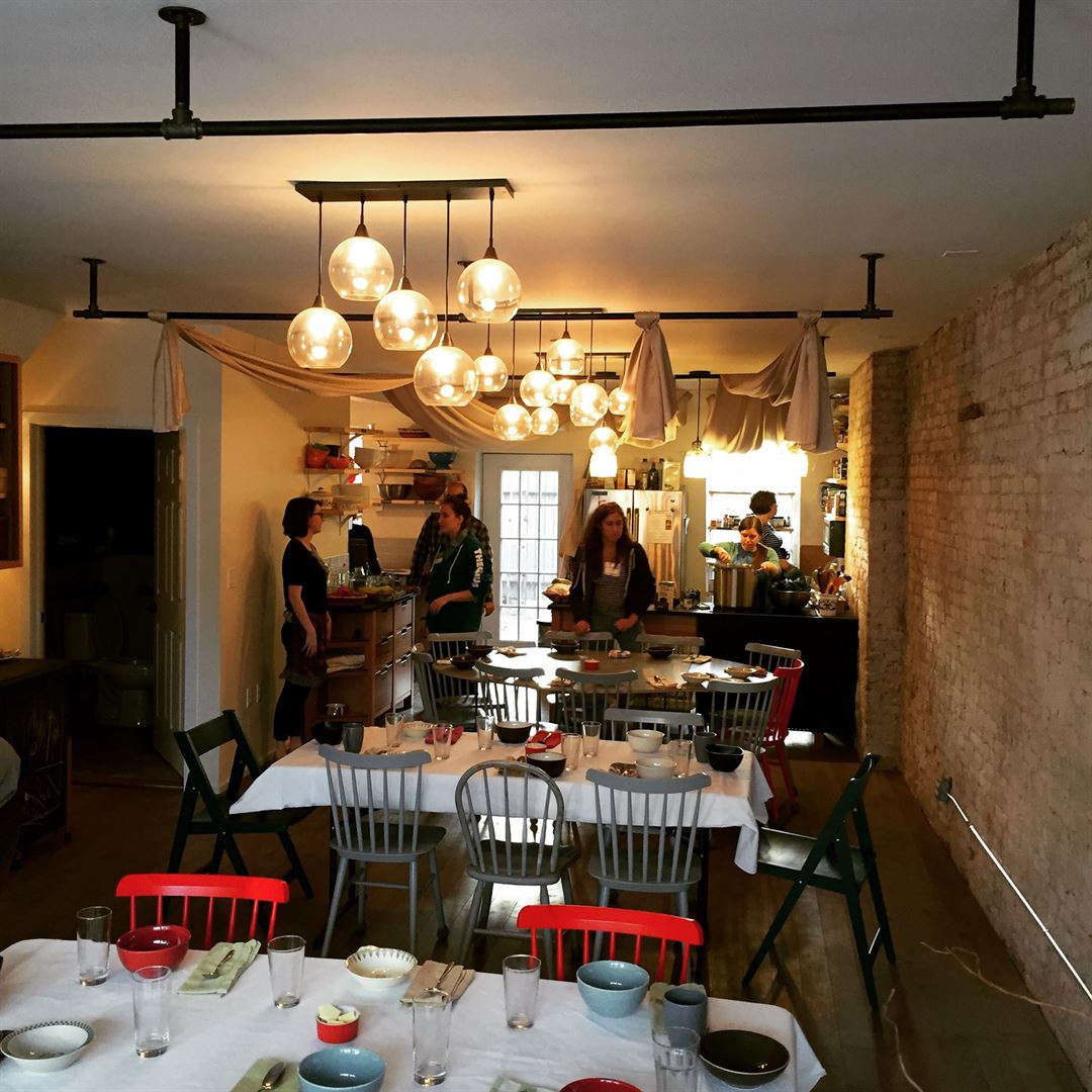 The space comfortably seats 30 people for a sit down dinner and up to 65 people for a standing cocktail event. It’s a furnished environment including a full kitchen where your friends can cook up a storm or your caterers can make themselves at home.