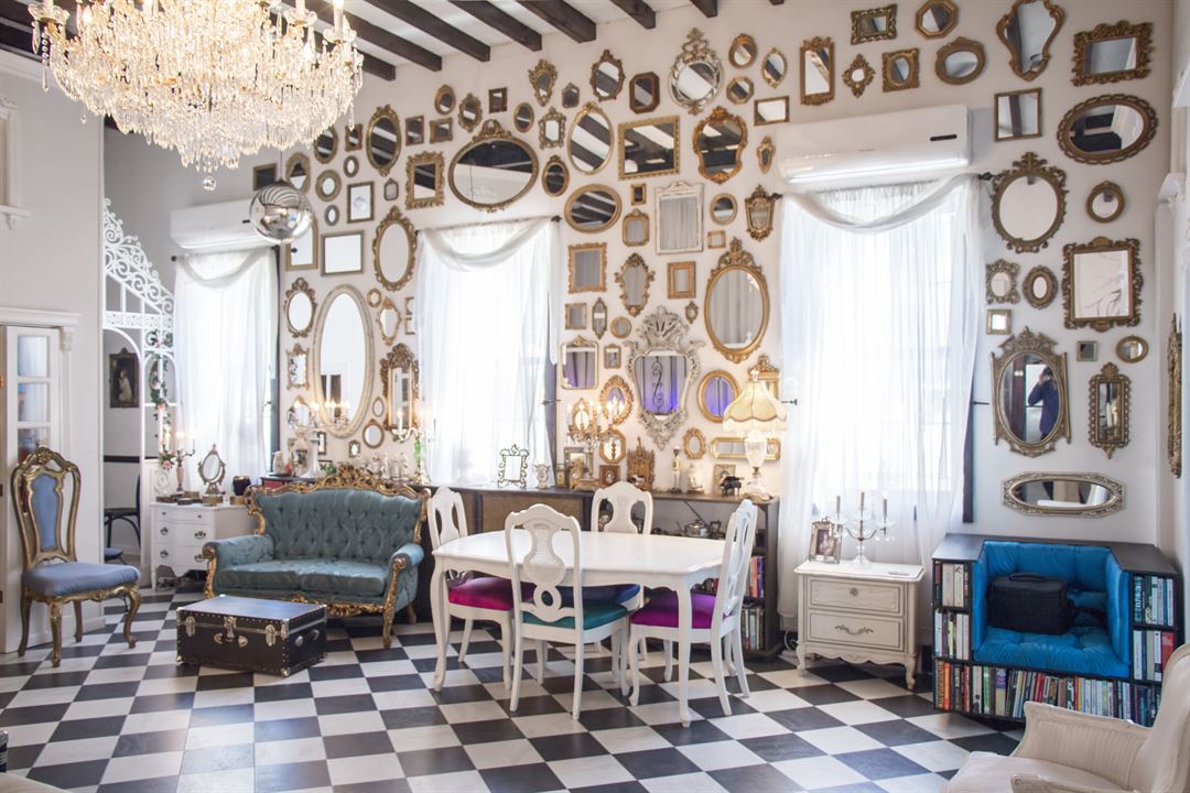 The space was designed and custom built by Alexander and Brittany Love, making their surreal dream a reality. Almost every piece of furniture or lighting you see is an original design or restored and modified from it’s original form.
