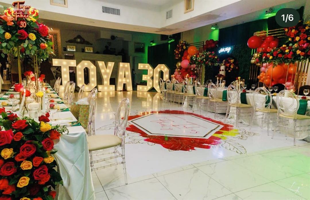 Our location is located in the industrial section of Canarsie, Brooklyn. This makes it easy for people that are driving to find parking. Our facility has a DJ booth, bar, food area, and three bathrooms. The extra large chandelier in the center, beautiful hard wood floors and large mirrors give the space its elegance.perfect for baby shower,christening,sweet 16’s E.T.C we have the best special on weekdays also.
