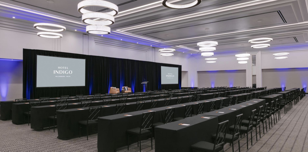 Willow Hall is a 10,000 sq ft ballroom located on the lower level of Hotel Indigo Williamsburg, designed for total flexibility. The space can be used as one expansive hall or transformed into three separate rooms, making it ideal for multi-stage events, breakout sessions, productions, and gatherings that require distinct zones for programming.