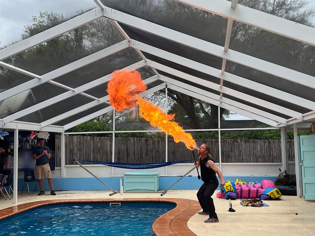 Fire shows with fire props and fire breathing dragons. Great for getting everyone excited at the party!