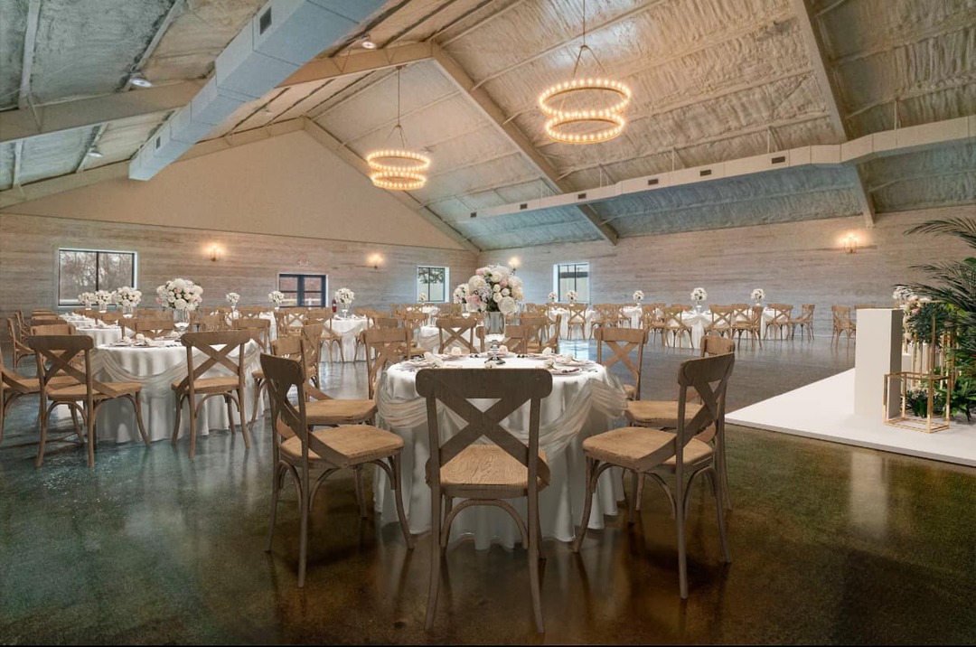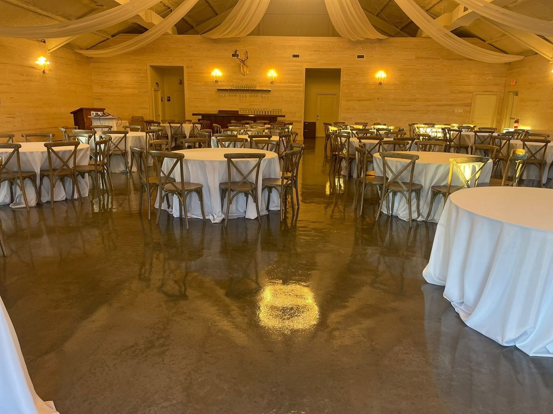 Newly built Event Venue on 8 acres just a few minutes from St Pius Church in Lafayette. Can hold up to 350 guests. Ambient lighting provided by two large double tier chandeliers and antique gold sconces. The building sits on top of a hill overlooking a small pond in a lovely natural setting. Bridal suite available with your rental along with a full service bar. Hire your caterer of choice and your own decorator and event coordinator to make your event truly unique. Booking Now! The first 3 bookings will receive a $1,000 discount.