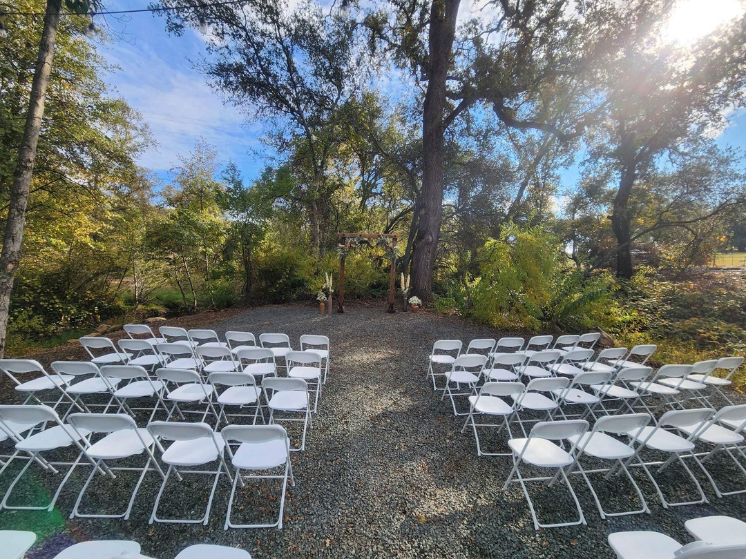 A unique venue that offers a year-round flowing creek, quaint fresh water pond, and natural archways of vines and ancient oaks, lights strung throughout the property and so much more. Located in Browns Valley in Yuba County.