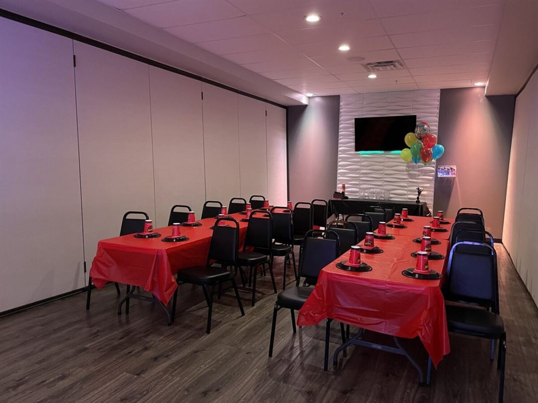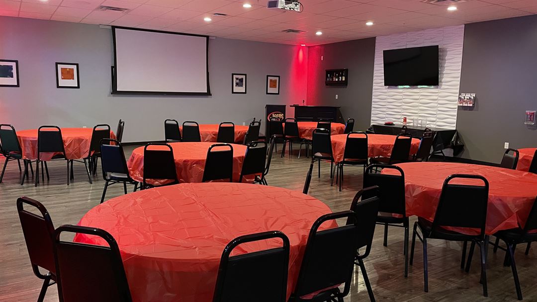 Planning your birthday parties, group gatherings, or corporate events at Scene75 in Brunswick, OH couldn't be easier. We're your one-stop destination for hassle-free event planning, offering delicious food options, versatile private and semi-private event spaces, opportunities for full facility buyouts, complimentary parking, and always-available A/V and Wi-Fi services.