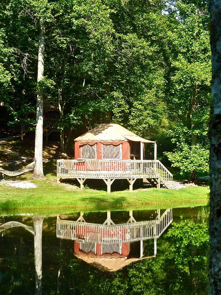 Located in the Nantahala Gorge near Bryson City, NC, “Weddings at Falling Waters” sits atop the Nantahala Gorge with views of Fontana Lake, the Nantahala National Forest and the Great Smoky Mountains National Park. This outdoor venue is surrounded by Rhododendron and Mountain Laurel and bordered by a creek and pond, and is perfect for every season.