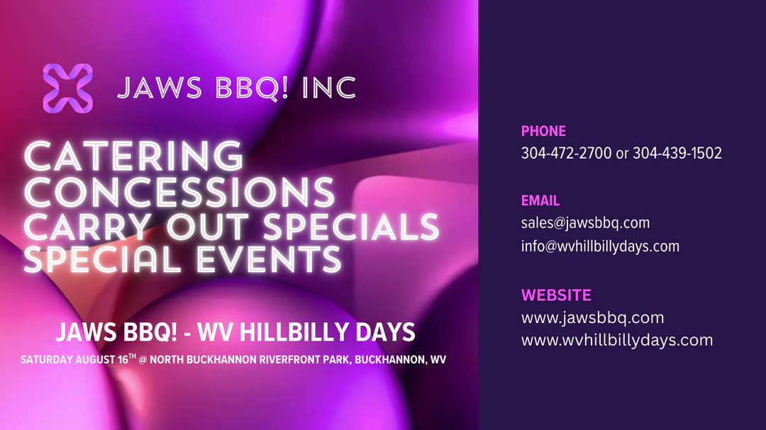 We are a full service WV family based catering service. Please do not let the name BBQ fool you because we feed all walks of life and events from 20 to 5000. Call today to discuss your many options. *NOT DISPLAYED* Gary Connell, Owner / Operator