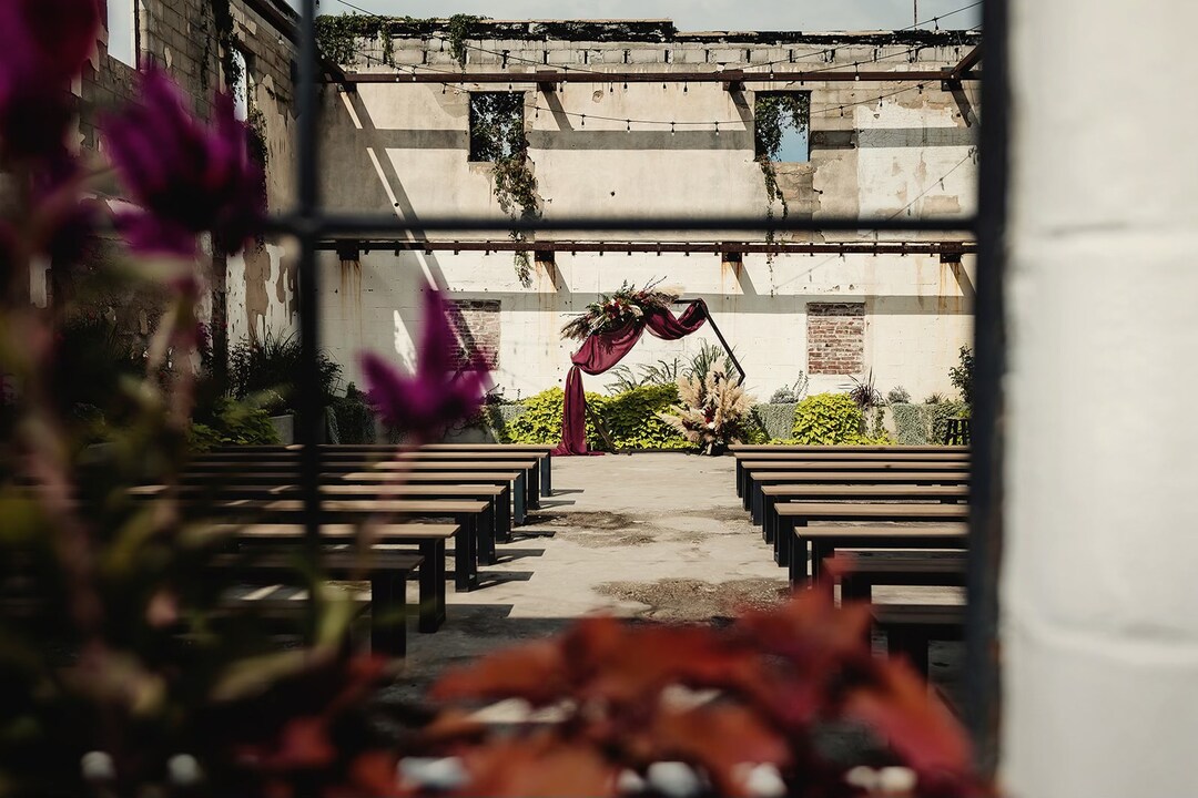 A romantic, industrial chic, urban venue that is located just 30 minutes North of Springfield, MO! With seating up to 175, it has everything you need for an unforgettable wedding and reception. Tables & Chairs are included in your wedding package – as well as two suites for getting ready.