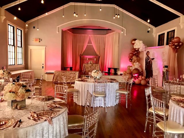 We are a full service venue and offer many options for all celebrations including but not limited to Weddings, Engagement/Bridal Parties, Baby Showers, Sweet 16 Parties, Quinceanera's, Signature Birthday Events, Fashion Shows, Corporate Events and the list goes on. Venue rental is inclusive of tables, Chiavari chairs, table linens, complimentary parking and wifi, event manager, bar areas, 3/4 kitchen, basic votive table centerpieces, and stage lighting. We offer a bridal suite and grooms loft for Wedding and special events requiring changing rooms. We offer many different services including a la carte add-on as well as inclusive packages.