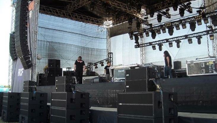 RCF System//Midas consoles, etc.//Backline: DW Drums, Ampeg, Fender, Marshall Amps, Cymbals,Congas//