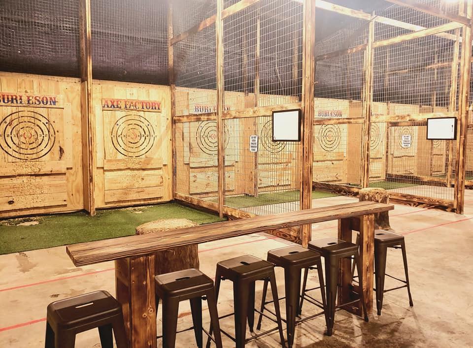 Located in Old Town Burleson, Texas, this unique and fun axe throwing range is sure to be a hit for your next party or event. Our trained AXEperts will personally teach every group to ensure you have it down and have a great time!