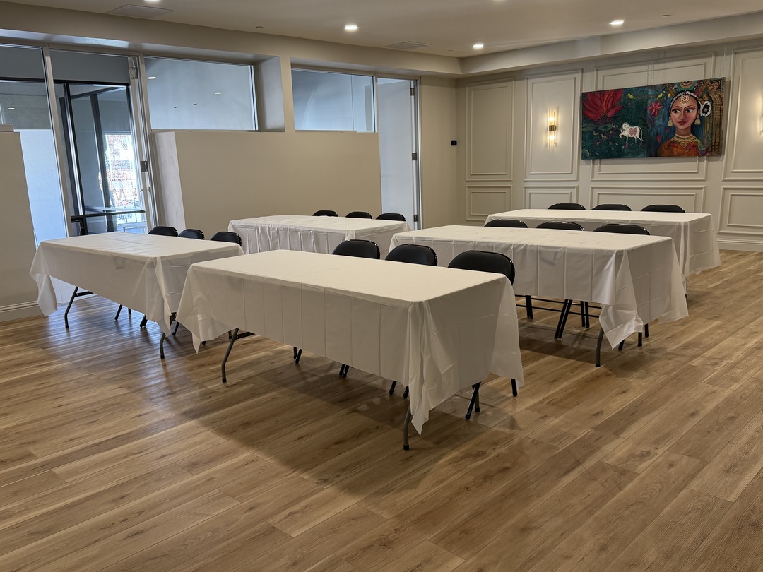 The space is big and bright with an array of beautiful paintings on the wall which give a vibrant and artsy feel to the space. The space is equipped with a kitchen with a sink - so, food and beverages can be served. Corporate meetings, Corporate off- sites, Team building activities, Birthday parties, Corporate events work well in the space.