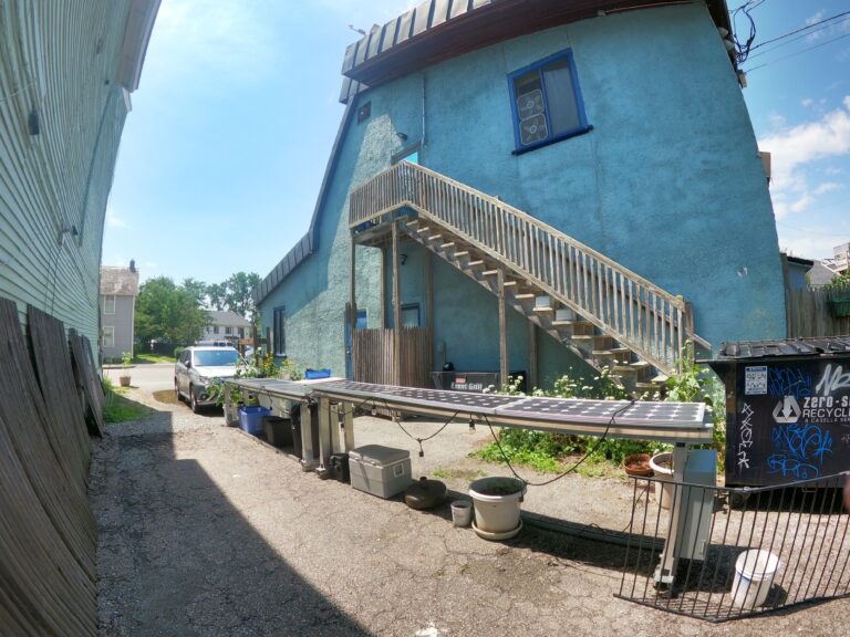 Includes a side alley next to building with amenities including lights, tables, outlets, parking (with electric vehicle charging), etc. Large conference room for meetings complete with tables, chairs, AC, WiFi, a monitor, and access to kitchenette and bathrooms.