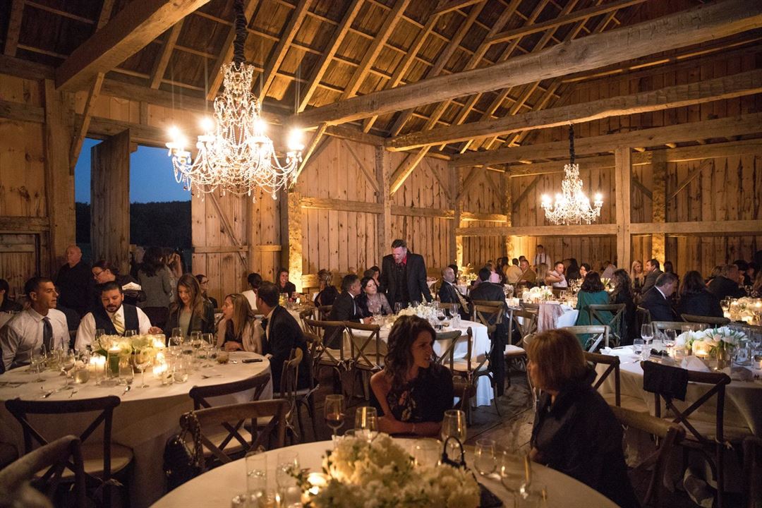 Perched on a knoll overlooking scenic farmlands of the upper Hudson River Valley, the Historic Barns of Nipmoose provide an idyllic setting for rustic chic wedding receptions and ceremonies. Surrounded by fields and woodlands, the Scottish Barn, German Barn and Corn Crib (all three included in a single event) offer a wide range of options for celebrations of all sizes and styles, whether elegant, intimate or grand. Fully restored, the impressive timber-framing of the barns compliment the expansive views, visible from both inside and outside.