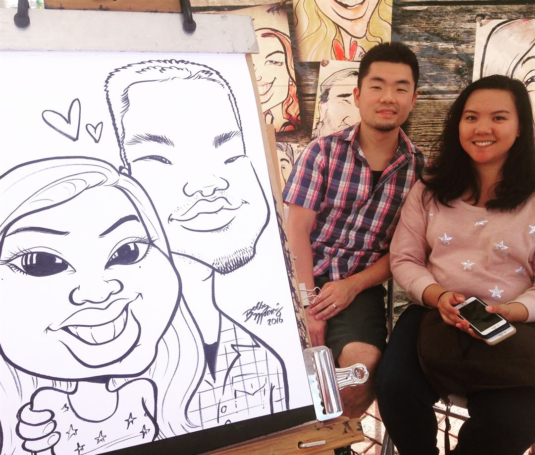 Create lasting memories of smiling faces with professional caricatures at your next event. Always sure to draw a huge cowd, traditional or digital caricatures can add fun and laughter to any event. Performed at Colleges, weddings, and corporations throughout Georgia, the ToonHeadz is sure to be a hit! Don't forgot that we add your custom saying, event name, or logo at the bottom of each caricature for others to remember where they were, and is a great marketing tool.