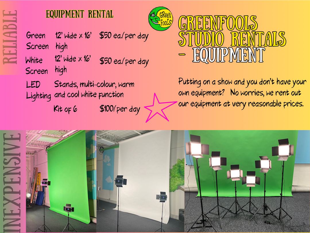 Need a Green Screen, White Screen, or LED lighting? We've got you covered.