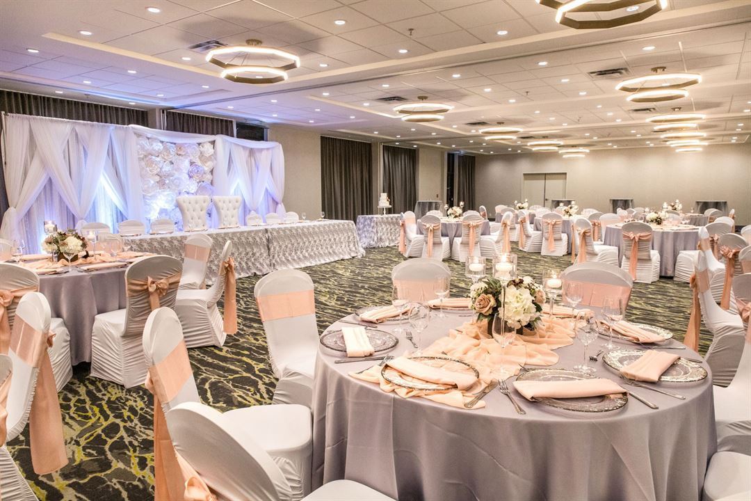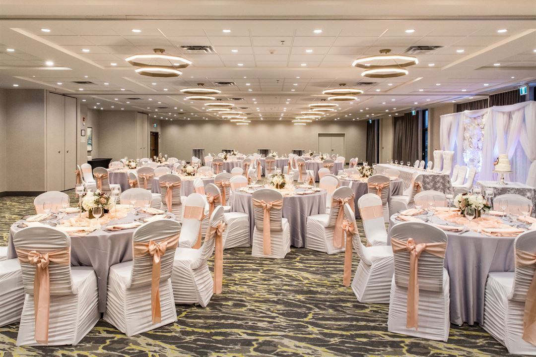 The Holiday Inn & Suites Calgary South Conference Centre showcases a modern ballroom specializing in providing a unique setting for your upcoming wedding or special event.