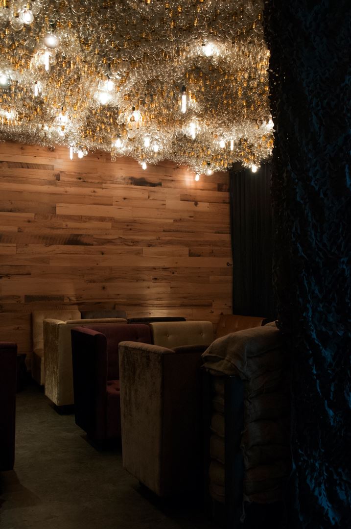 SHELTER is an intimate and upscale cocktail and wine bar. Uniquely combining elements from high end hotel bars across the USA and original industrial grunge styles from Berlin and Eastern Europe, SHELTER is a juxtaposition of swanky and casual. The location houses a cozy standing environment and a relaxed lounge for group seating and light dinner fare. There are several standout design pieces, including an artfully decorated wall of gas masks, a beautifully crafted light fixture featuring over 5,000 individually hung bulbs, and an original collection of captivating wall textures and designs. SHELTER is truly a one-of-a-kind setting for memorable nights and superb food, drink and… shelter.
