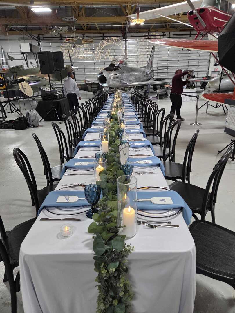 The Hangar Flight Museum offers you the flexibility to use your own caterer or choose one from the Museum's list of preferred caterers. You are also welcome to supply your own liquor providing AGLC rules and regulations are followed. Tables and chairs are included in the basic rental cost.