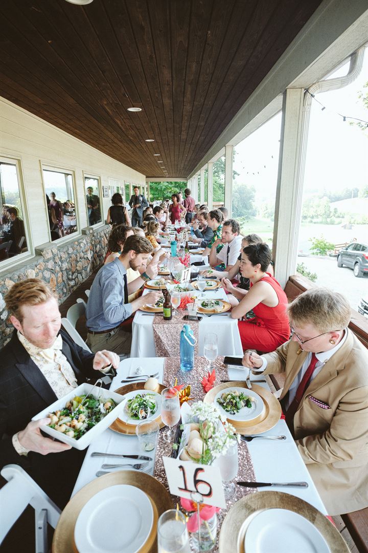 McCauley Hall Community Center is our crown jewel. It holds up to 110 people with tables and chairs or 150 with just chairs, and has outstanding views of the Blue Ridge Mountains from its 2000 sq ft wrap around porch and from inside through large picture windows.