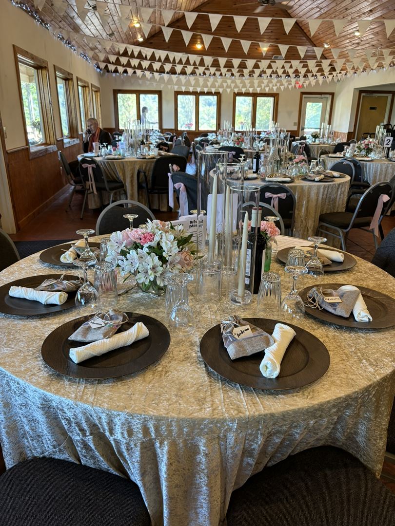Phoebe Needles Center, Inc. offers many lovely event spaces for parties, weddings, bridal & baby showers, family & class reunions, retreats, corporate meetings, and more! Our beautiful 78 acre facility has a large celebration hall for up to 110 guests, three lodging facilities for a total of 70 guests, two large pavilions, an outdoor stage amphitheater, playground, volleyball sand pit, basketball court, swimming pool, and hiking trails.