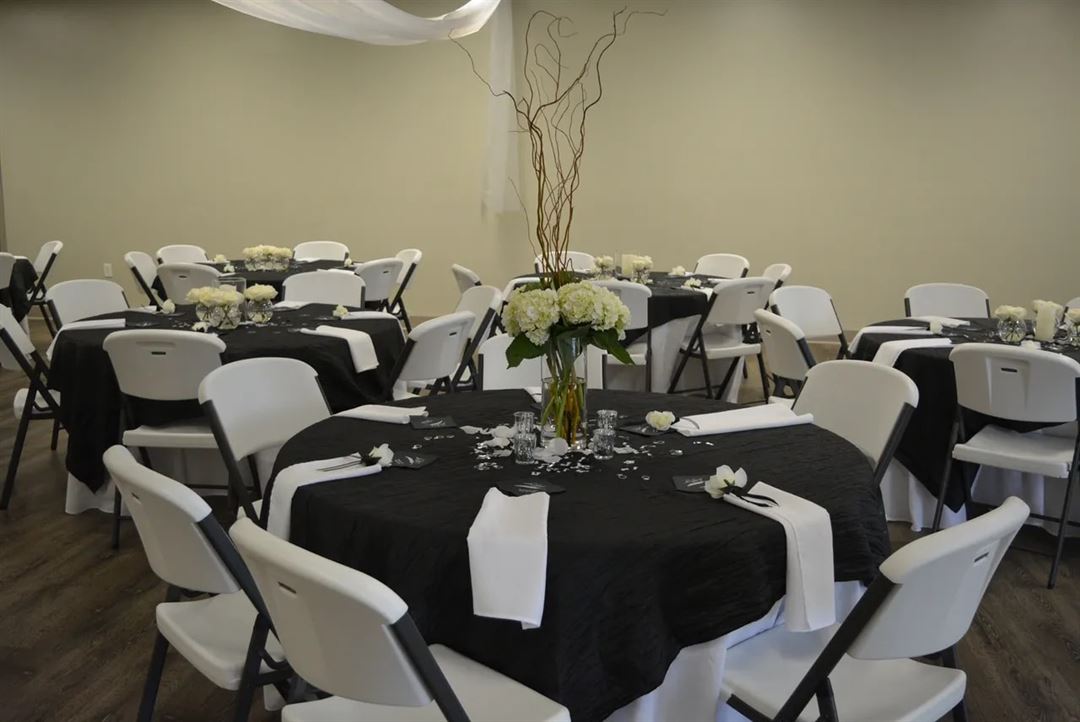 We offer three rooms to rent, the banquet room, the west room, and a conference room. The Banquet room is perfect for a large family reunion or a beautiful wedding reception, and the West room is great for baby showers or small training seminars.The neutral coloring of our main rooms and the flexible floor plans allows for numerous design possibilities!