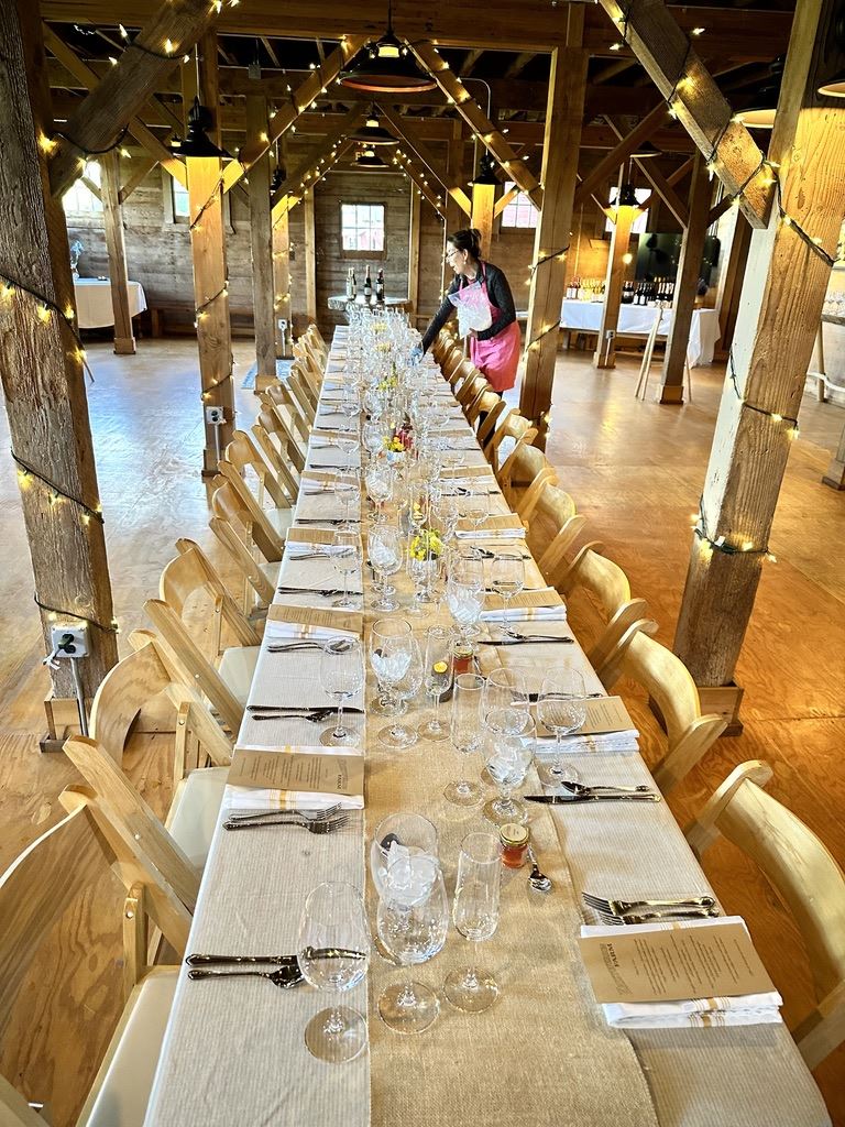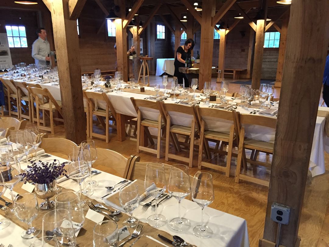 The space can accommodate 80 seated at tables and considerably more if set up with chairs only or just standing room. For a larger group, you may utilize the area outside the barn proximate to the event space. Please note that we have limited parking, 49 spaces total, and so if there are more than 98 guests, the law requires off-site parking.