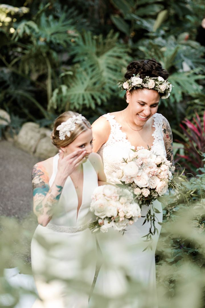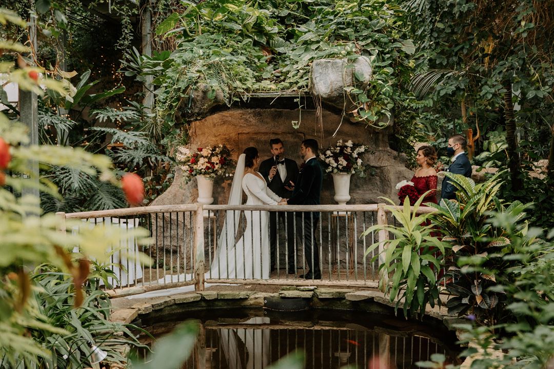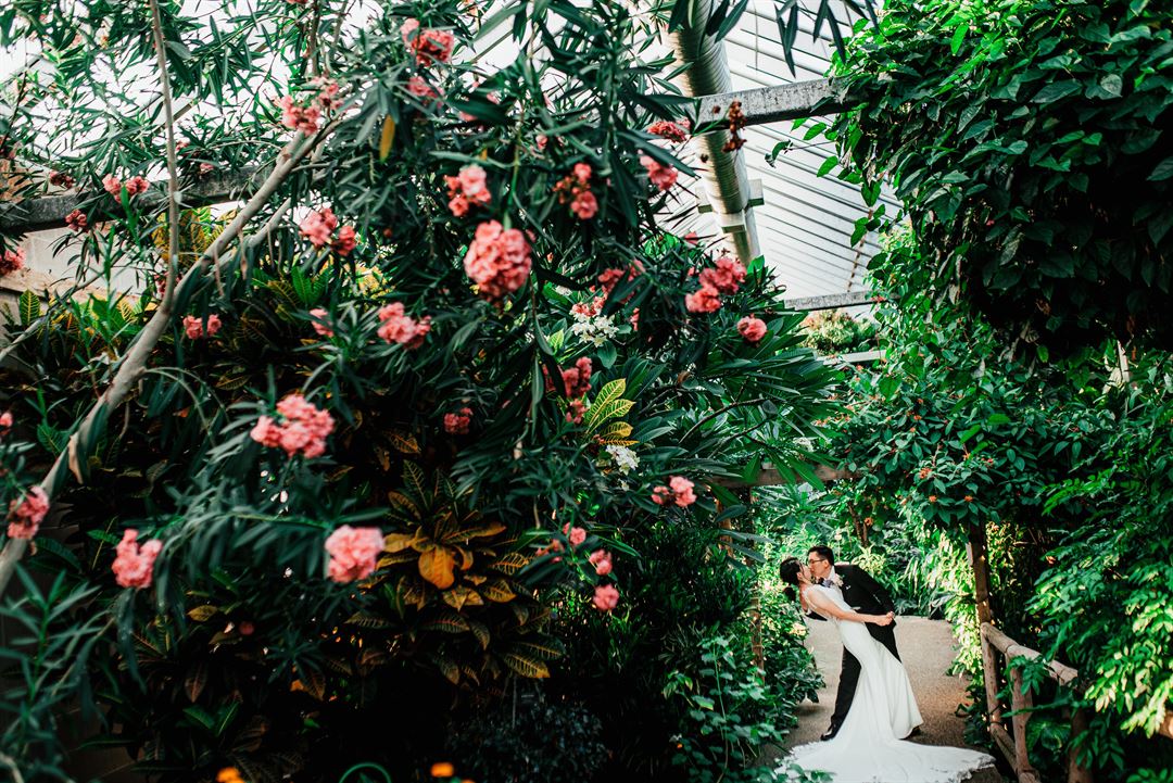 The venue is GORGEOUS! The space is beautifully laid out with a bright, colourful foyer and some smaller off-shooting galleries (our guests were entertained by the exhibits during the cocktail hour, and we received feedback that they liked having something to do during the photo-taking hour). The ceremony space is inside the greenhouse, it was amazing to see it transformed into the tropical outdoor wedding of our dreams while also offering the predictability and stabilities of being indoors. We were actually surprised at how many butterflies and birds were still awake late into the evening! Our guests liked being able to go back into the greenhouse at any point during the night.