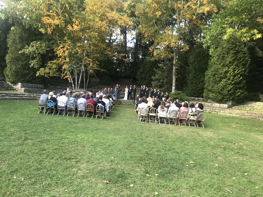 Designed by renowned landscape architect Fletcher Steele, The Camden Amphitheatre is a National Historic Landmark adjacent to the Camden Public Library and overlooking beautiful Camden Harbor. It is available for wedding ceremonies at a very reasonable price. There are many popular venues for receptions nearby, including waterfront locations and sailing schooners.