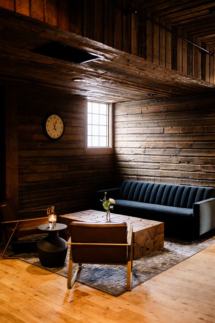 Cornerstone Theatre: Located just a 5-minute walk to downtown Canmore, Cornerstone Theatre features a sweeping cathedral ceiling, farmhouse tables and vineyard chairs, a beautiful stonework fireplace, and chic lounge area in the lobby, and a wide range of modern amenities. Couples who choose this venue can hold their ceremony at the Canmore Ranch, a private, forested space with sweeping mountain views.