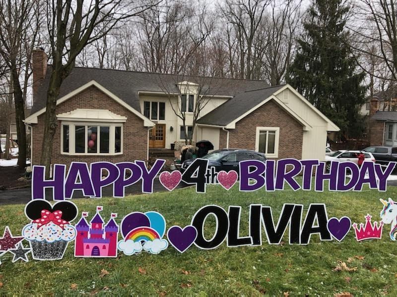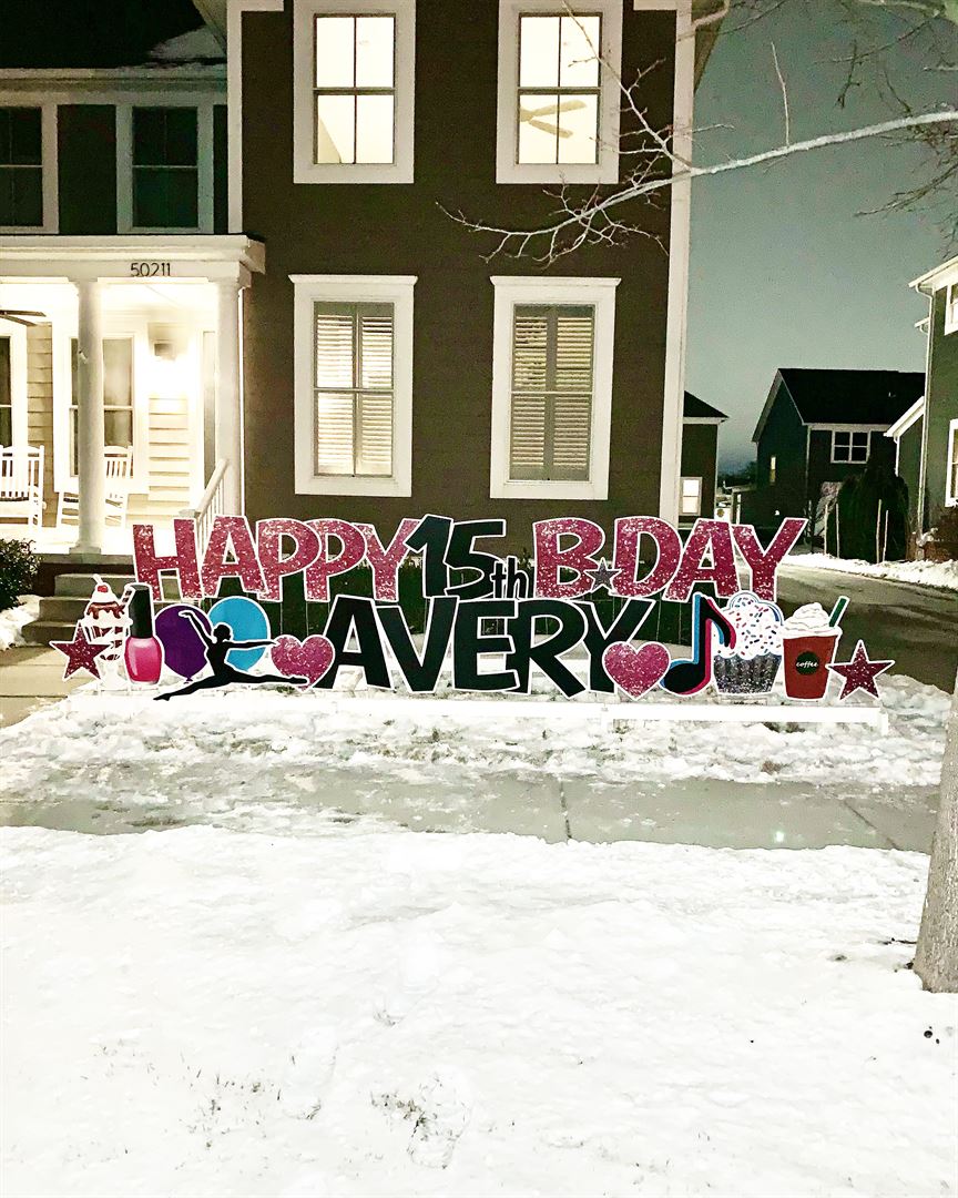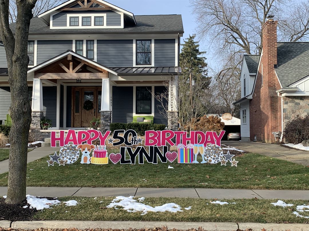 SIGN DREAMERS Plymouth Canton can help you celebrate birthdays, graduations, anniversaries, baby showers....any occasion! Our superior yard sign rentals make any celebration even better! We design, deliver, and set-up your yard greeting and then return promptly at the end of your rental agreement. We have a large variety of graphics and enjoy designing a greeting that is specific to your loved-one. Let us help you surprise them with a beautiful and unique greeting. The more notice you can give of your request, the better. We service Plymouth, Canton, Northville, Novi, Farmington Hills, Westland, and surrounding areas. We hope to help you celebrate!!