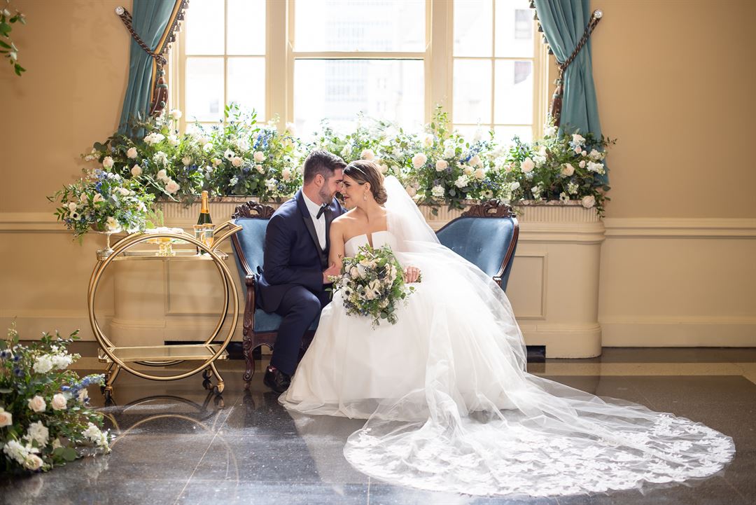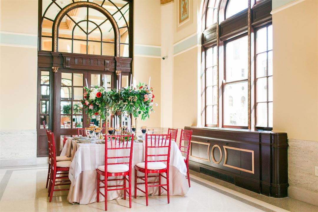 Guests enter at street level and make their way to the ballroom up the magnificent marble staircase to a gorgeous Grand Lobby. Perfect for smaller, more intimate gatherings and cocktail hours, the ornate lobby will leave guests speechless. Our Grand Lobby can also be set up to accommodate cocktail hours and small parties set amidst a gorgeous historical ambiance under the original crystal chandelier.