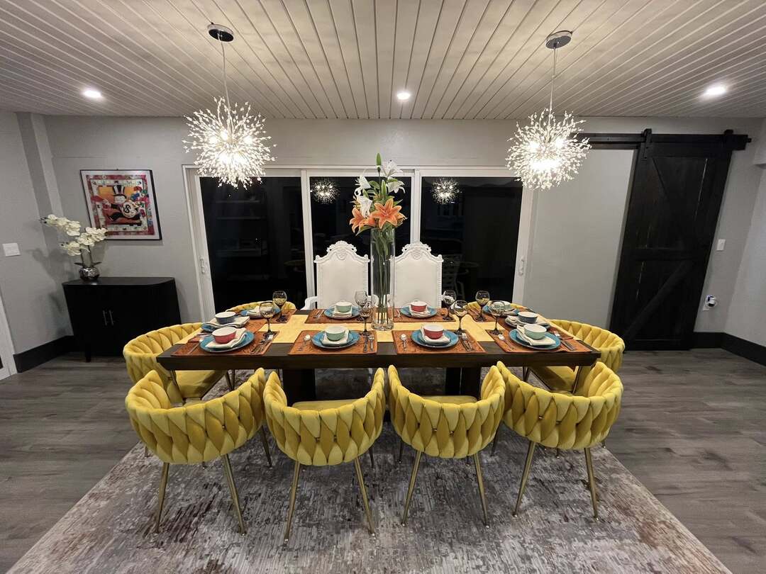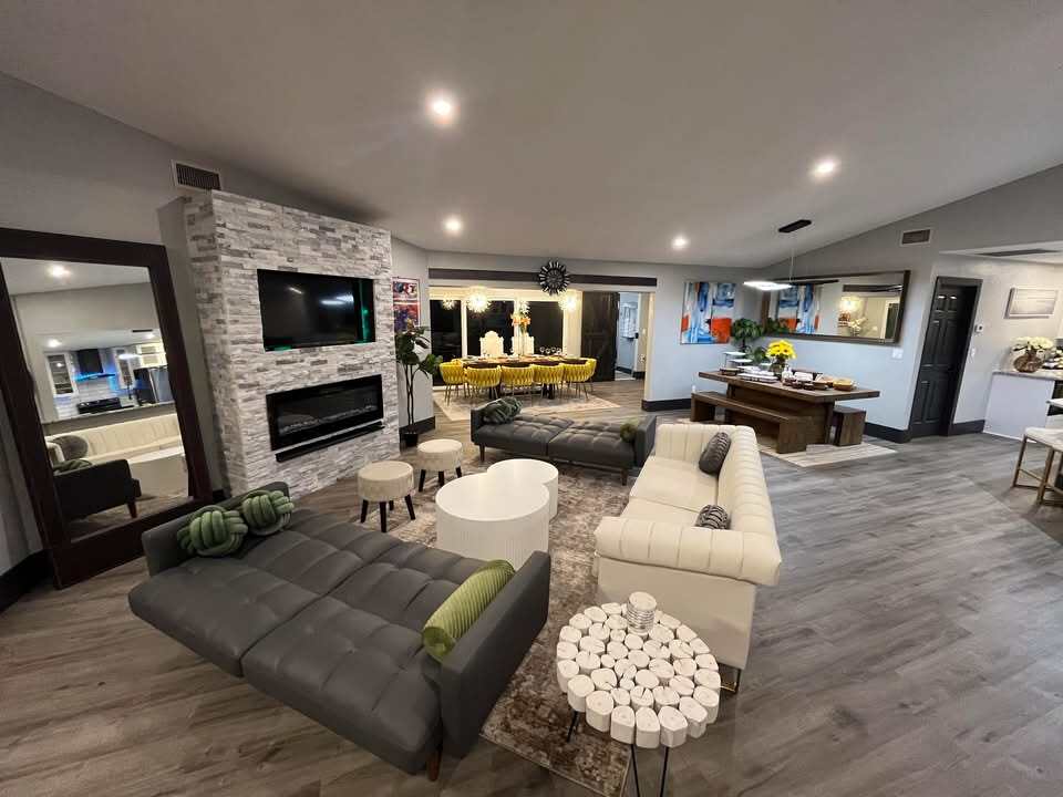 Welcome to your dream getaway in Cape Coral, Florida! Our luxurious canal-front retreat offers 4 bedrooms & 3 bathrooms, perfect for vacations, weddings, bridal party preparations, & reunions for up to 50 guests but a maximum of 13 overnight guests. Enjoy a fireplaced living room, landscaped grounds with lit walkways for evening strolls, & a Tiki Hut for that tropical feel. With designer furnishings & ample seating, you'll feel like royalty. Book now and say, "Who needs to pay a resort price?”