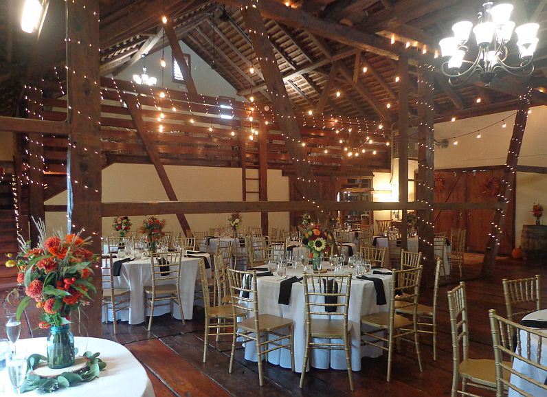 Three Gables Barn can accommodate up to 205 guests. Wedding couples will enjoy exclusive use of the property on their contracted date. The Wedding Package includes an extensive collection of tables and chairs for both the ceremony and main reception in addition to over-sized umbrellas and decorative pieces, which are perfect for adding a unique touch to your event. Charming suites are provided in one of the historic buildings on the farmstead for both the Bride and Groom's parties to change and prepare for the “Big Day” ahead. Several foul weather back-up contingencies are available based on the size of your party.