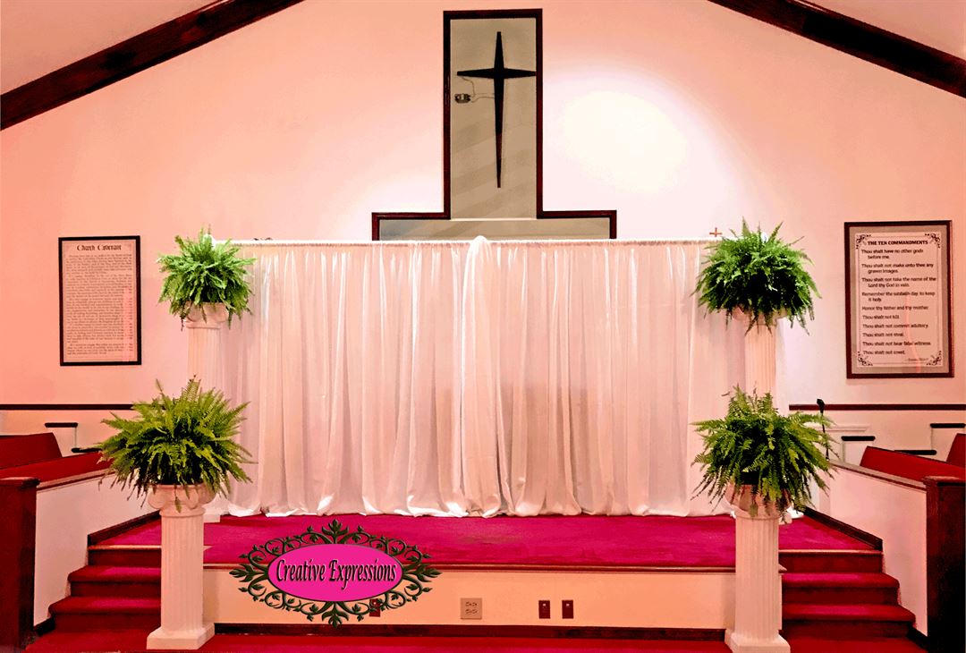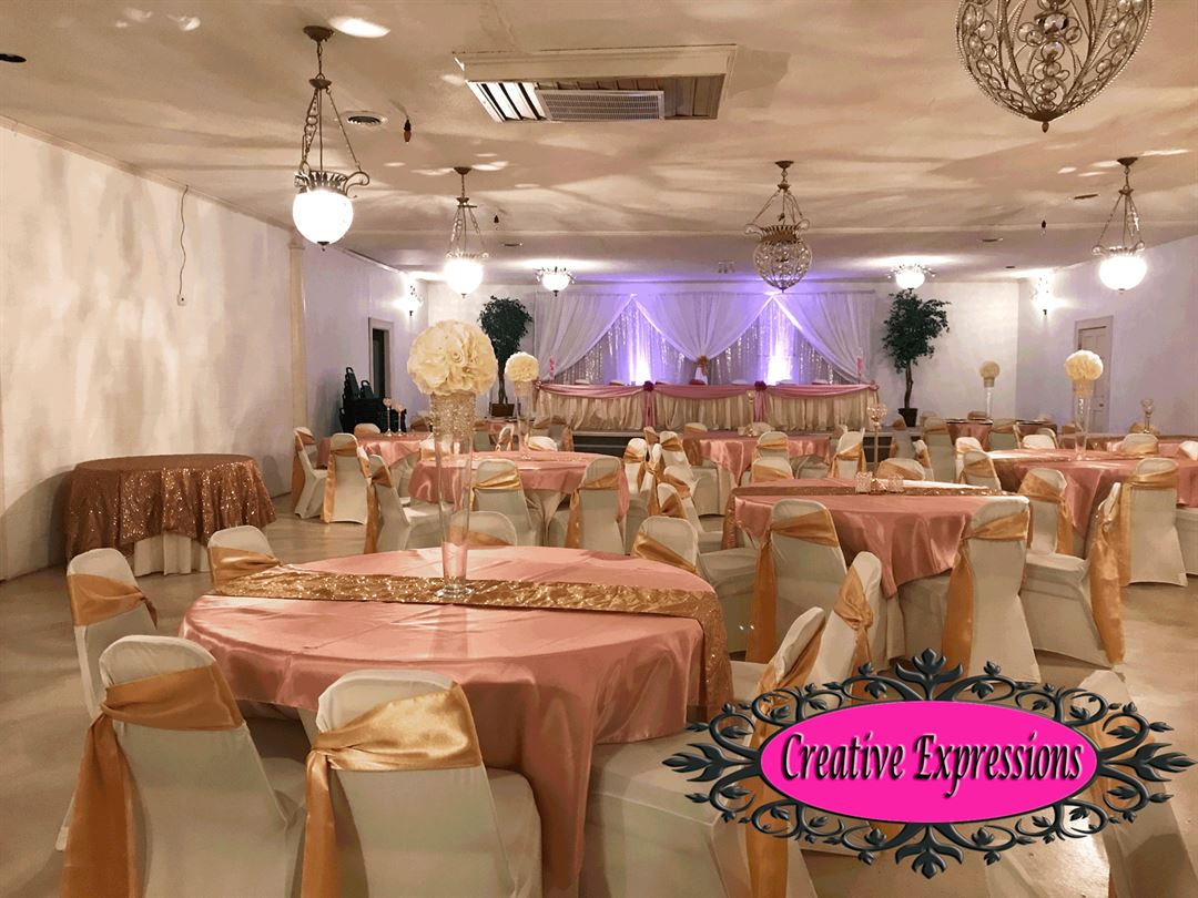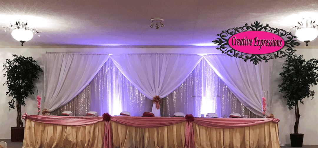 Creative Expressions specializes in elegant wedding and reception decor to include linens, draping, chair covers, centerpieces, floral designs, and panel backdrops in the Upstate and Midland of South Carolina.