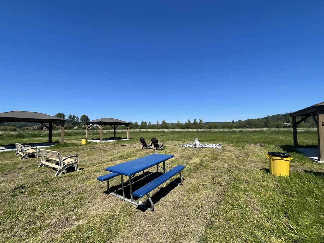 Hold your next party or meeting at our beautiful blueberry farm located in the rural Carnation but close to the eastside communities of Redmond, Issaquah, Bellevue, and Seattle. We are a 40 acre working farm with beautiful fields and a large, grass parking lot. We have four large gazebos with six picnic tables and benches. Although these can accommodate up to 35 people, extra tables and chairs can be rented for an additional fee. Water and power on site. Please ask us for other amenities including tractor rides and sprinklers.