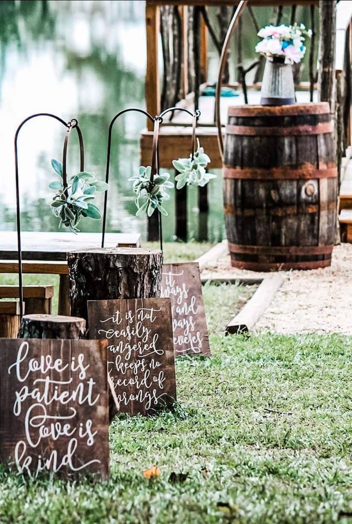 Weddings of all sizes can enjoy A Little Piece of Heaven Venues, LLC, being an outdoor venue that accommodates parties of 50 guests up to 150. Couples who feel connected to nature and rustic aesthetics will have their hearts set on the waterside setting, complete with a merrily splashing fountain. Enjoy a simple and gorgeous ceremony with a flower-laced archway by a small, handsome dock with natural bark wood beams. Bask in the sunlit trees and dancing shadows of the surrounding foliage. Then, take your ceremony to the shade and coverage of a spacious tent. This rustic atmosphere offers a wide variety of photo opportunities, including a bark wood swing with floral handles. The spacious outdoor setting also offers a variety of areas for the couple to escape and have intimate moments, including grassy walkways and a carved wooden bench overlooking the water. This venue also offers a charming, humble get-ready room, which has a cabin-like, woodsy aesthetic.