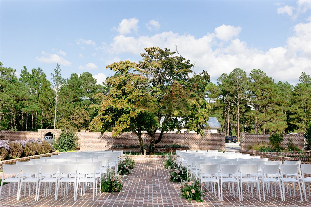 Village Pine Venue is a Charleston-inspired dream brought to reality and located just outside the world famous golf town of Pinehurst, NC. The elegant and modern facility features gorgeous views of the entire property including a large water feature. With a slightly farm, slightly industrial aesthetic, the property is a serene space that exudes a fresh vibe. Guests can enjoy cocktails on the veranda or at the indoor/outdoor bar. Winding trails lead to several special ceremony spots including the courtyard and pond.