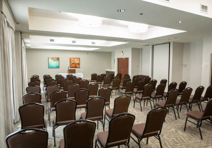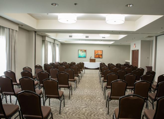 If you're visiting the hotel in Cary, NC for business and need to host an event, the 1,200-sq-ft, dividable ballroom is sure to impress clients. The meeting space seats up to 75 and has wired and wireless Internet access and delicious catering options.